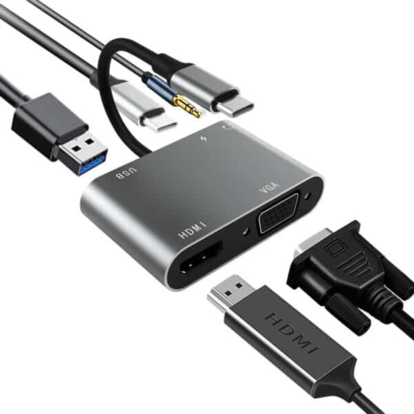 موزع USB من النوع C 12 في 1، USB C إلى HDMI 4 منافذ USB 3.0 Gigabit Lan VGA، DisplayPort SD TF 3.5 مم Audio، ومحول PD